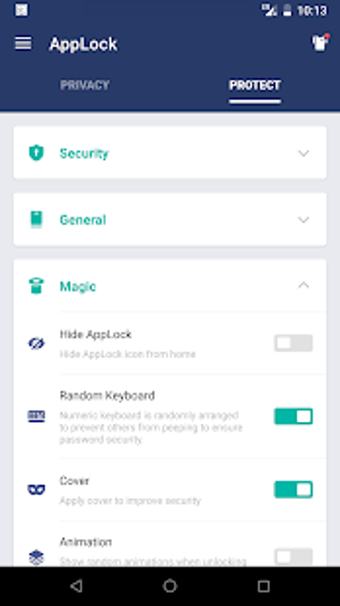 För att låsa appar framgångsrikt har detta program några ytterligare funktioner. Till exempel kan du skapa en 'Cover Screen', som är en falsk skärm som ger illusionen att en specifik app har slutat fungera. Den kan också slumpmässigt be om fingeravtrycksidentifiering för att neka åtkomst till personer som försöker använda din smartphone.